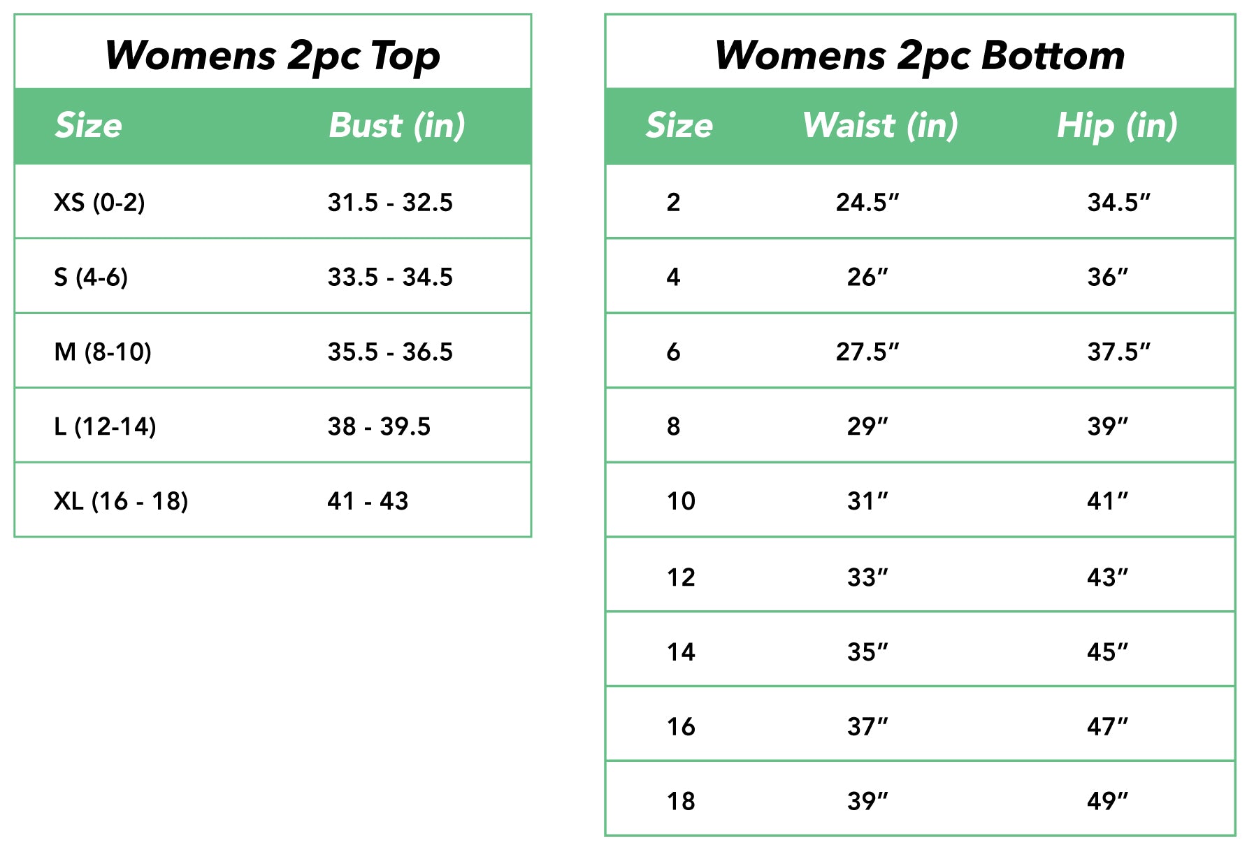 2Pc Bottom Size