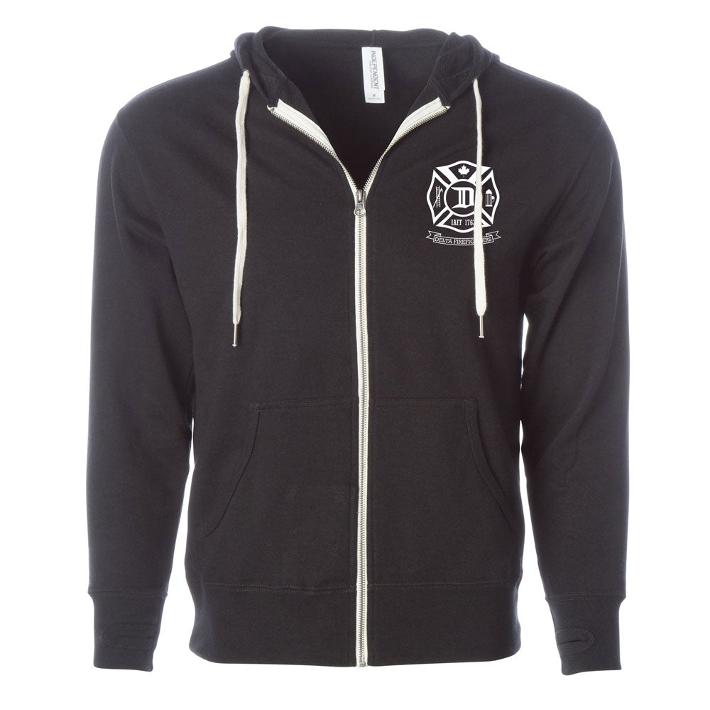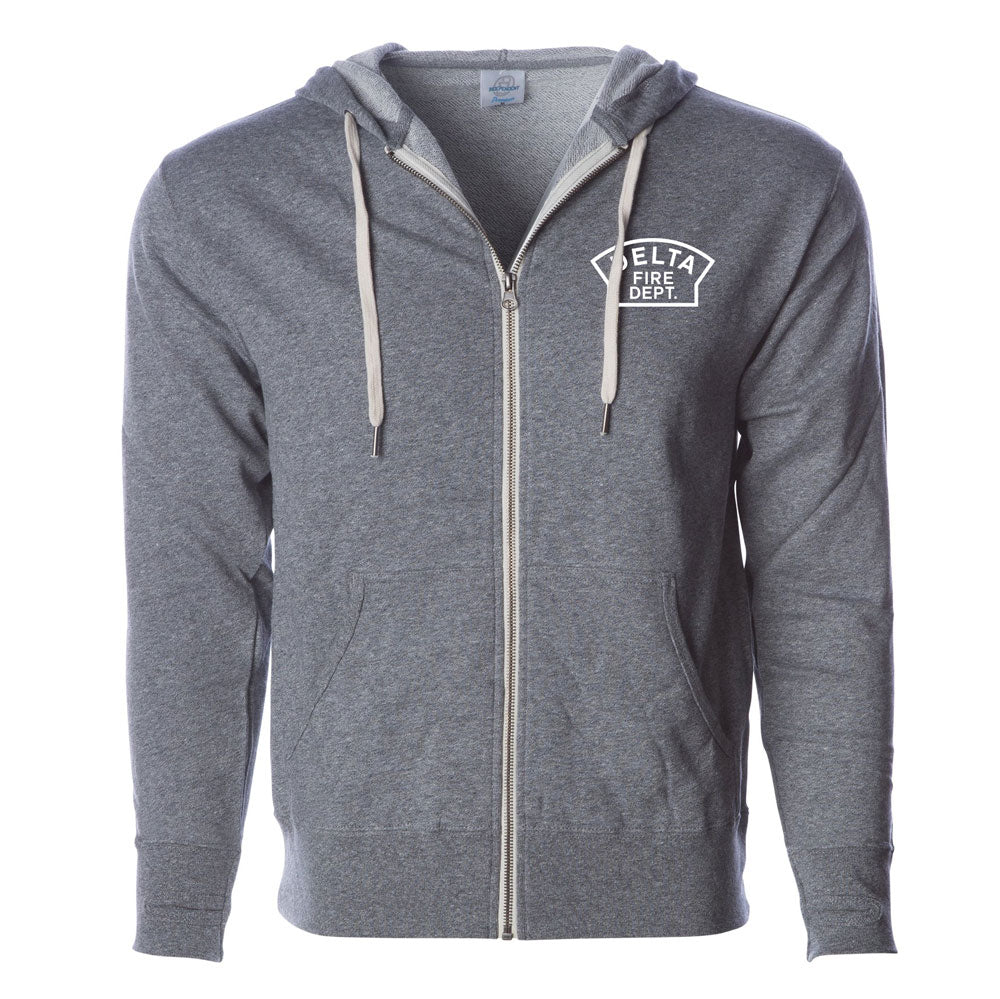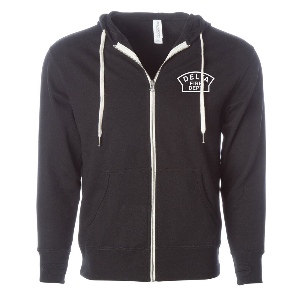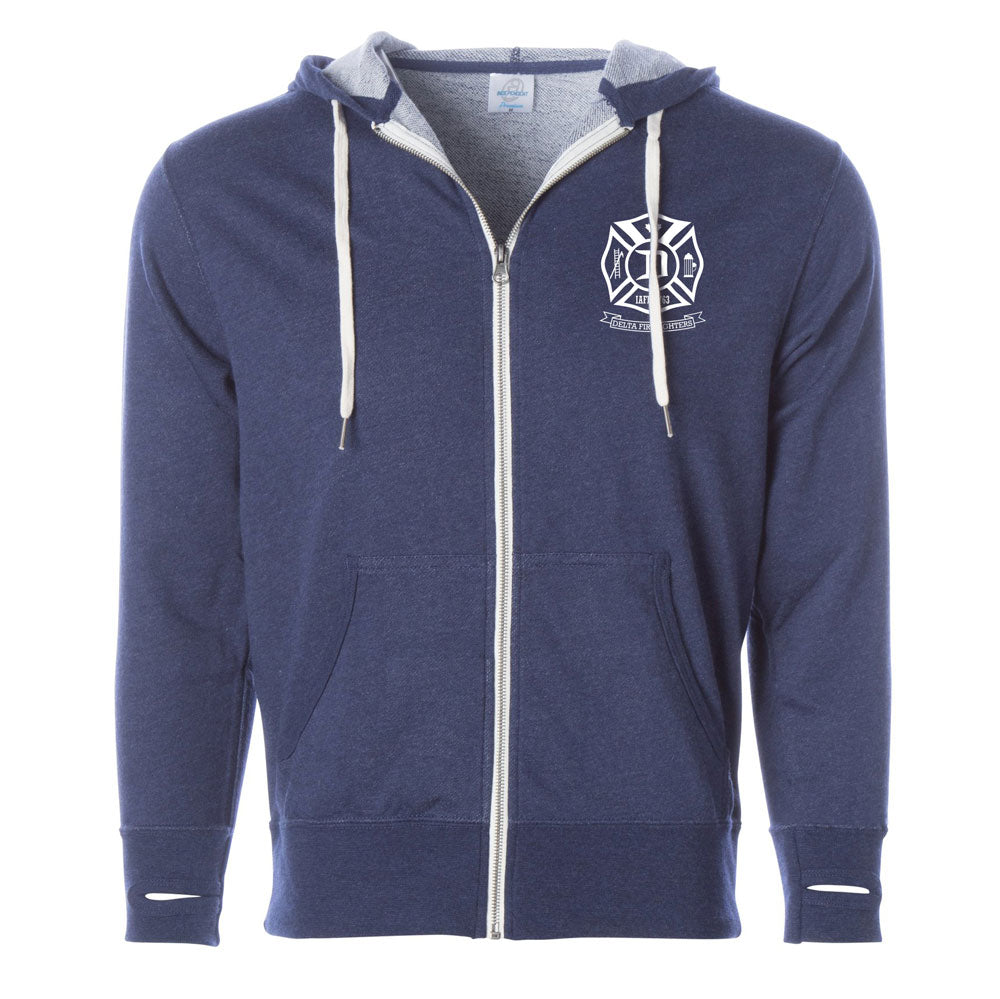 - Offers a fitted body with contrast french terry interior and contrast natural-coloured exposed zipper tape