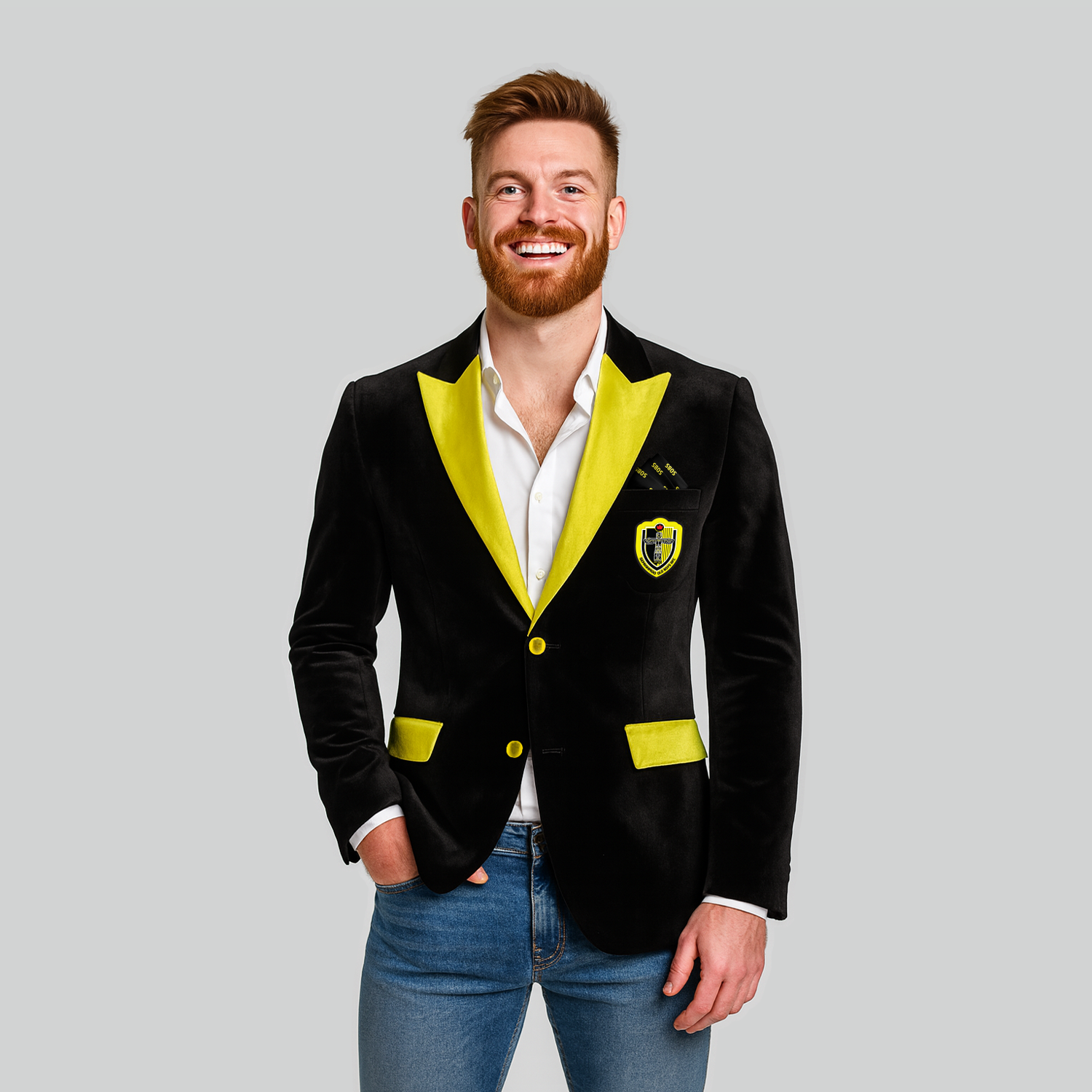 - Sleeve Velvet fabric with contrast lapels & side pockets