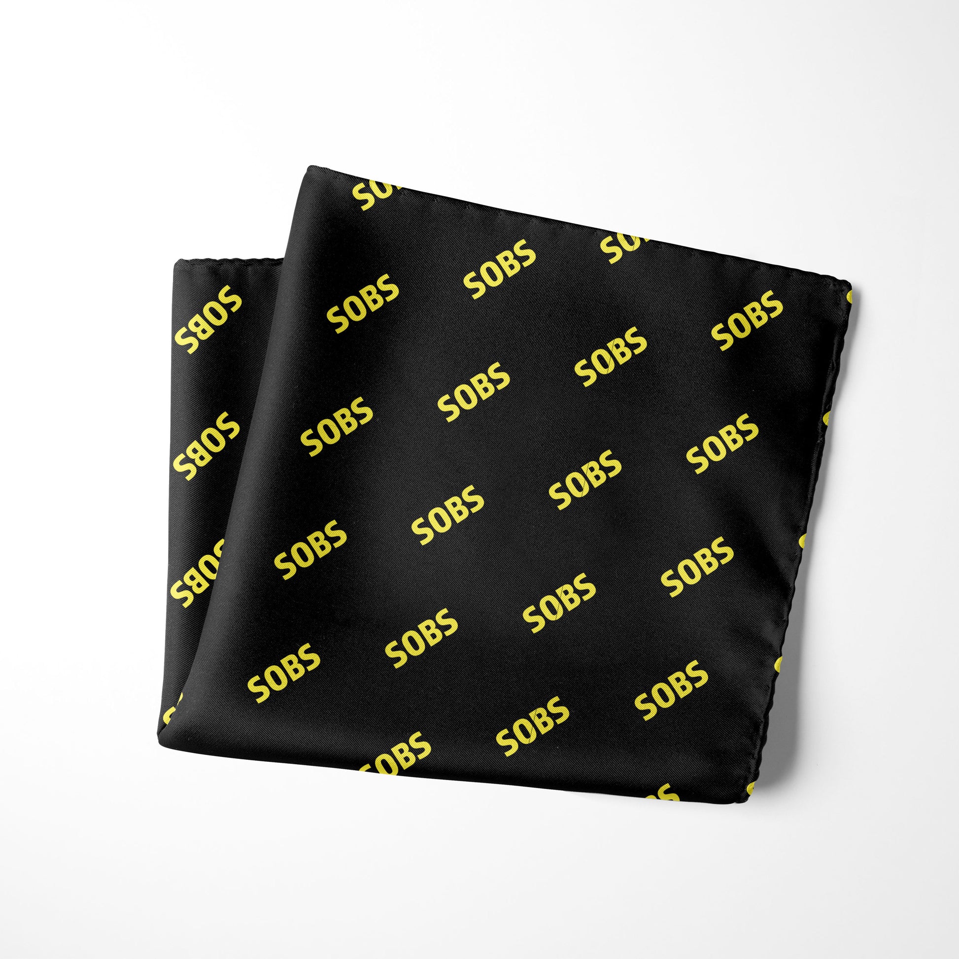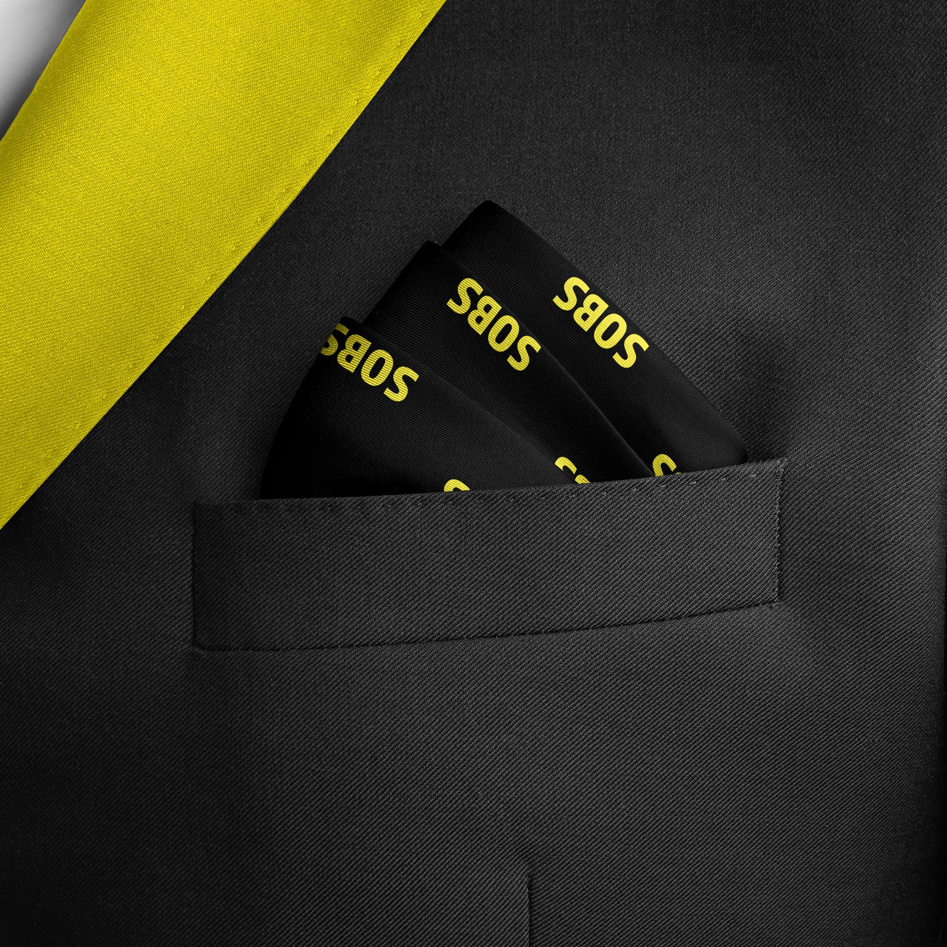 Semiahmoo Old Boys Pocket Square - Black w/ Yellow SOB Pattern